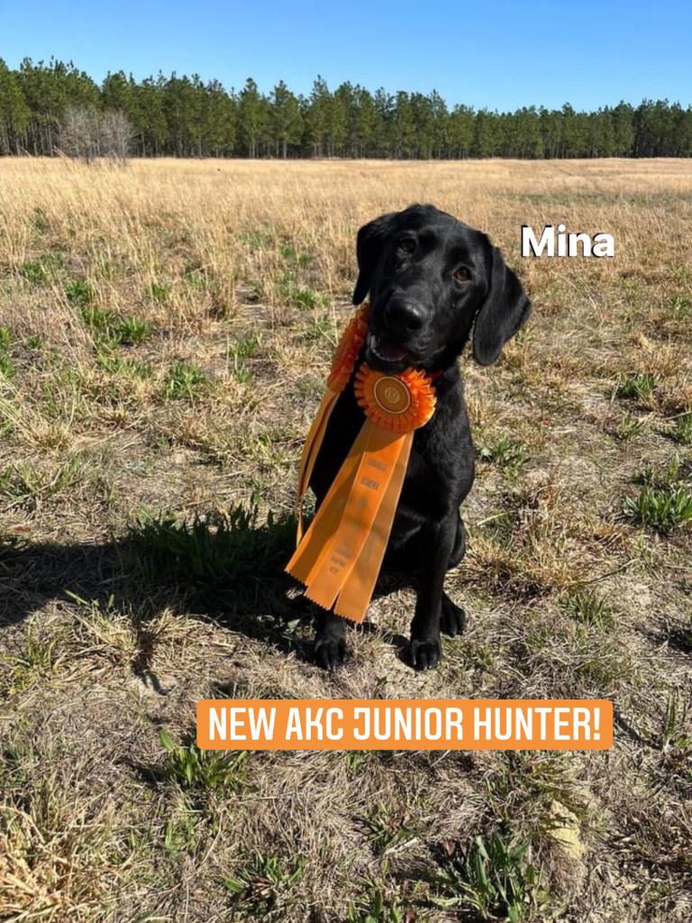 TK Hot Zuppa obtained her AKC Junior Hunter title during the 2019 hunt test season. It was an incredible experience, and though it is only an entry level title, we both learned a whole lot. Zuppa was given extremely high praise from all of the judges and consistently scored 10/10 in all categories judged – marking (ability to remember the location of a fallen bird), style, trainability and perseverance and courage in hunting. We had some extremely hot days where all participants were warned not to let their dogs hunt for too long on marks, too dangerous for many in such high heat indexes. We saw some tougher water – some so filled with lily pads the ducks were nearly impossible to see, some with difficult sight lines, mud and plants that the dogs had to push hard to get through. In every single test I was beyond wowed by her abilities and talent. We got lot of great feedback from judges, even hearing one say “whoa, that dog is thunderous!” remarking on her speed and intensity. We are very excited to continue on to the senior level in 2021 with this incredible dog.